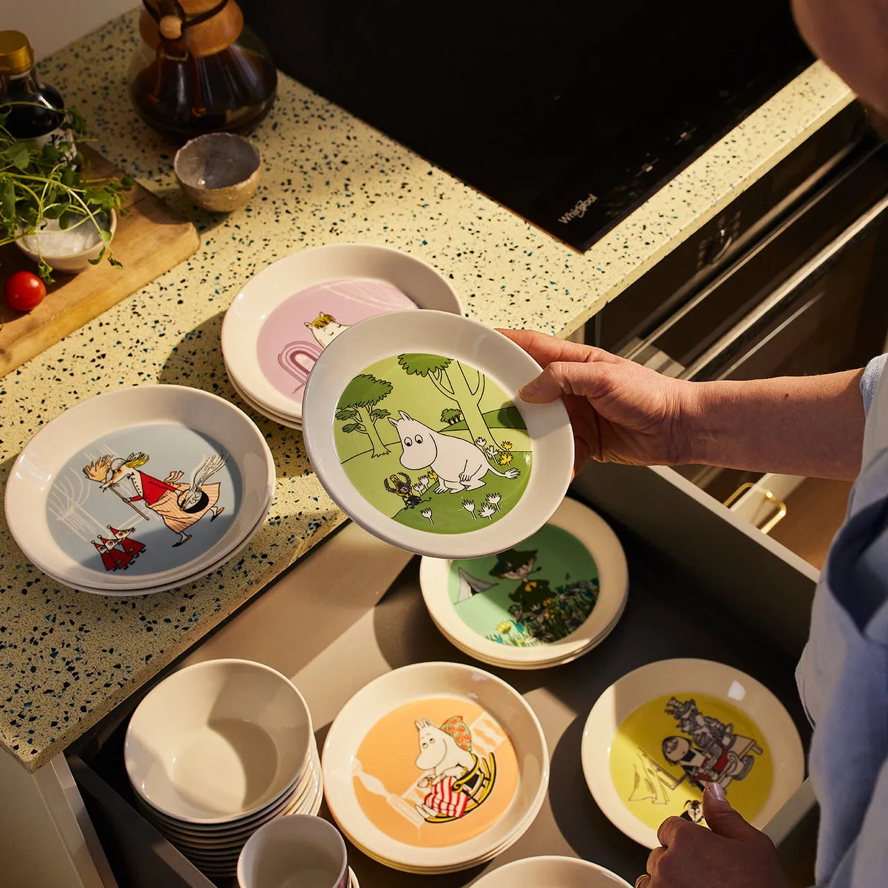 Muminek to wesoły i nieustannie ciekawski osobnik. Jest przyjacielem wszystkich i uwielbia przygody. Na zielonym talerzu Muminek z kolekcji Moomin Classics po raz kolejny odkrywa coś nowego, nad czym może się zadziwić. Tym razem to jeden z maleńkich Marsjan, którzy wylądowali w Dolinie Muminków.