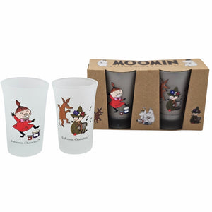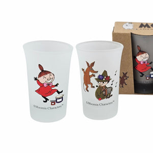 Uroczy zestaw miniaturowych szklanek z matowego szkła z wizerunkami Włóczykija i Małej Mi. Idealny do porannego spożywania zdrowych shotów smoothie! Preferowane mycie ręczne. Umyj przed pierwszym użyciem. Wymiary: 13 x 7,5 x 4,5 cm, pojemność: 50 ml.