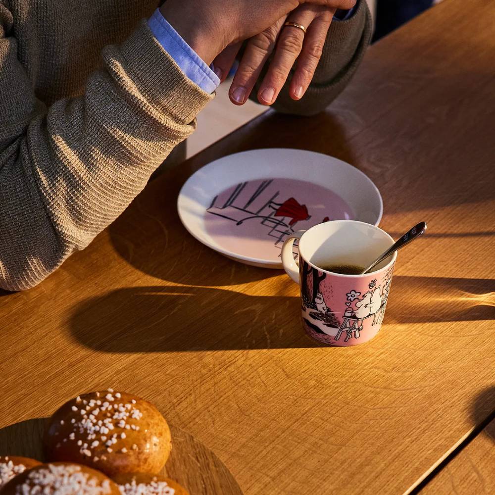 Ten różowy kubek Muminków przedstawiający Migotkę i Muminka w objęciach stał się klasykiem od czasu jego wydania w 1996 roku. Został elegancko zilustrowany przez artystę Arabii, Tove Slotte. Ilustracje na kubku Muminków można znaleźć w drugim i trzecim komiksie Muminków. Twoja kolekcja kubków Muminków nie będzie kompletna bez tego uroczego kawałka. Zobacz także inne części serii Moomin Love.