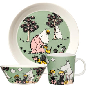 Kolekcja „Loving Care” uosabia ducha rodziny Muminków, w której miłość i troska są okazywane wszystkim istotom w Dolinie Muminków. Ilustracja przedstawia wzruszającą przygodę, w której piknik przeradza się w brawurową akcję ratunkową, gdy Muminki ratują rozbitków.Można używać w kuchence mikrofalowej, piekarniku i zmywarce.