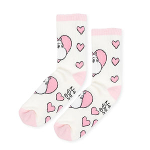 Biało-różowe skarpetki retro z Muminkiem, rozmiar EU 36–42.