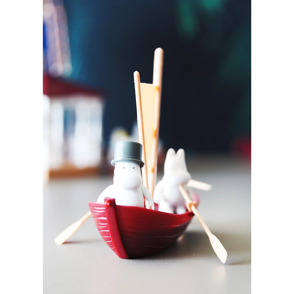 Żaglówka Tatusia Muminka z dwoma postaciami: Tatusiem Muminka i Muminkiem. Jak myślisz, dokąd płyną? Wymiary opakowania: 21 x 22 x 8 cm. Produkt nieodpowiedni dla dzieci poniżej 36 miesięcy ze względu na obecność małych części (ryzyko zadławienia).