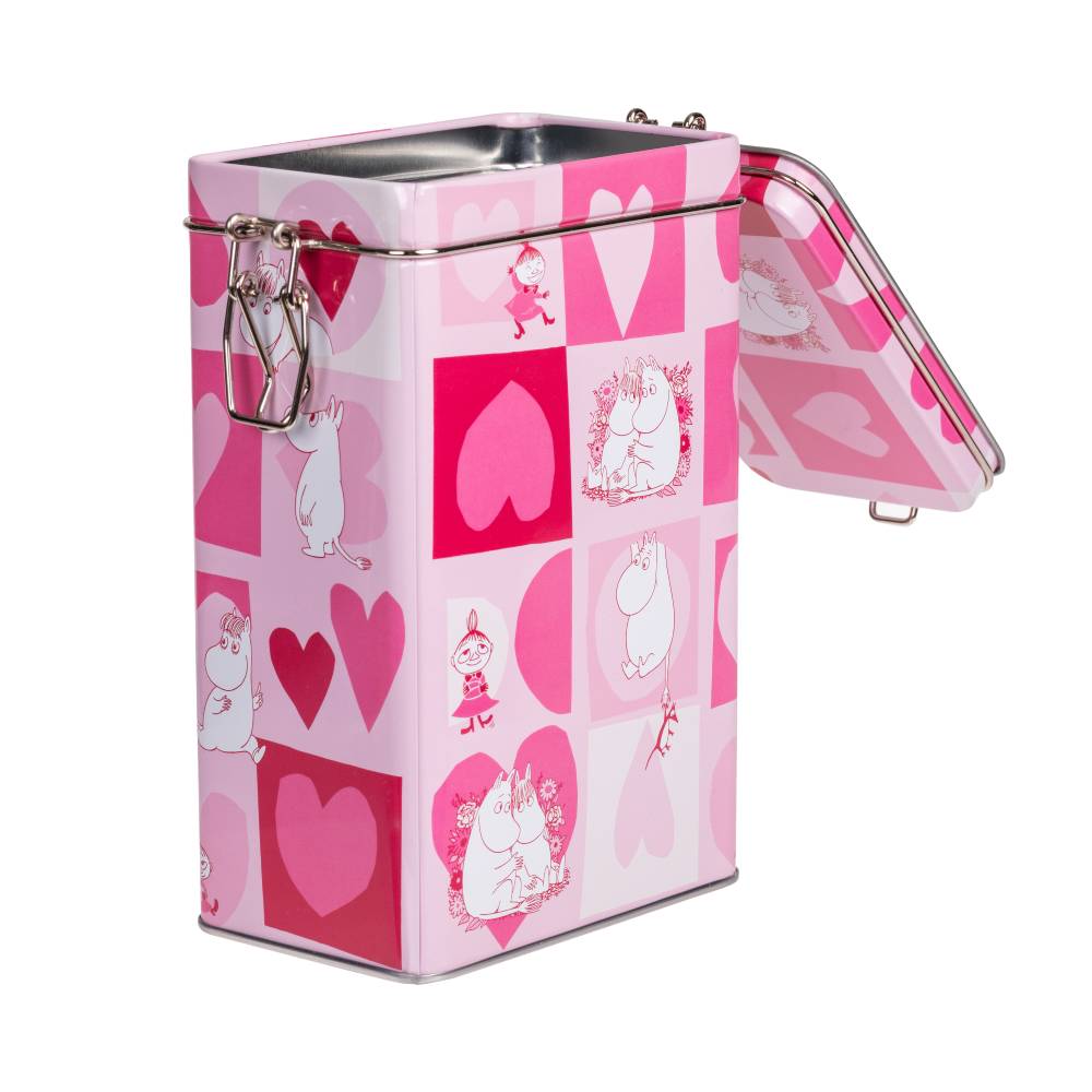 Metalowa puszka Zakochane Muminki różowa 20 cm - Martinex