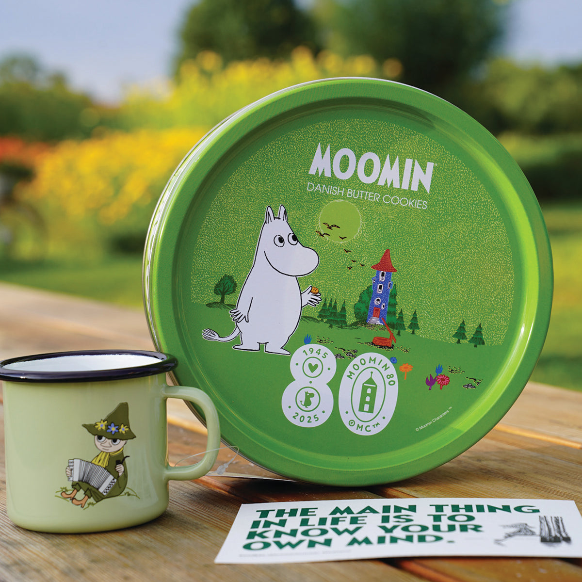 OFICJALNY MOOMIN SHOP POLSKA Zestaw 3-el. kubek emaliowany 250ml Włóczykij Muurla + ciastka maślane w puszce 340g House of Denmark + pocztówka Putinki