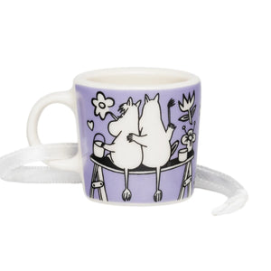 Kubki o pojemności 12 mililitrów to miniaturowe reprodukcje uwielbianych kubków z Muminkami. Miniaturowy kubek przedstawia Pannę Migotką i Muminka tulących się do siebie. Para lubi się bawić i spędzać razem czas, ale ich relacja jest również romantyczna.