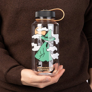 Bezpieczna zakrętka z plastikowym mocowaniem utrzymuje ją na miejscu, a szeroki otwór ułatwia napełnianie, dodawanie kostek lodu i czyszczenie. Pojemność: 960 ml – wystarczająco duża, aby nawadniać organizm przez cały dzień. Wygoda: Duży rozmiar, mniej dolewania. Zrównoważony rozwój: Wielorazowa alternatywa dla butelek jednorazowych. Wykonana z tworzywa Tritan™ bez BPA, jest lekka, trwała i krystalicznie przezroczysta – łączy wygląd szkła z wytrzymałością plastiku. Zabawne ilustracje Muminków dodają uroku, a odporny na stłuczenia materiał sprawia, że jest bezpieczna do codziennego użytku w domu, na siłowni lub w podróży.