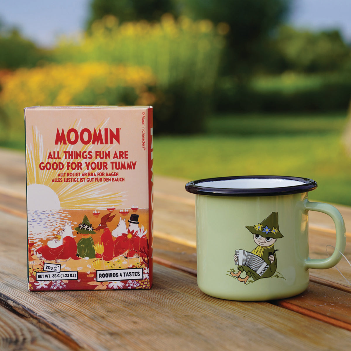 OFICJALNY MOOMIN SHOP POLSKA Zestaw 2-el. kubek emaliowany 370ml Włóczykij Muurla + Herbata w torebkach Nordqvist
