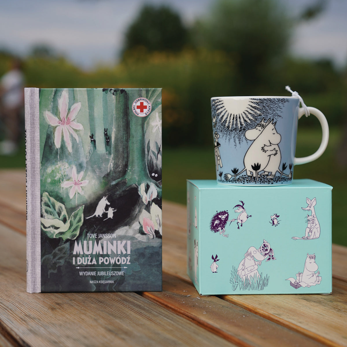 OFICJALNY MOOMIN SHOP POLSKA Zestaw 2-el. kubek porcelanowy 300ml Love Blue Moomin Arabia+książka Muminki i duża powódź Nasza Księgarnia