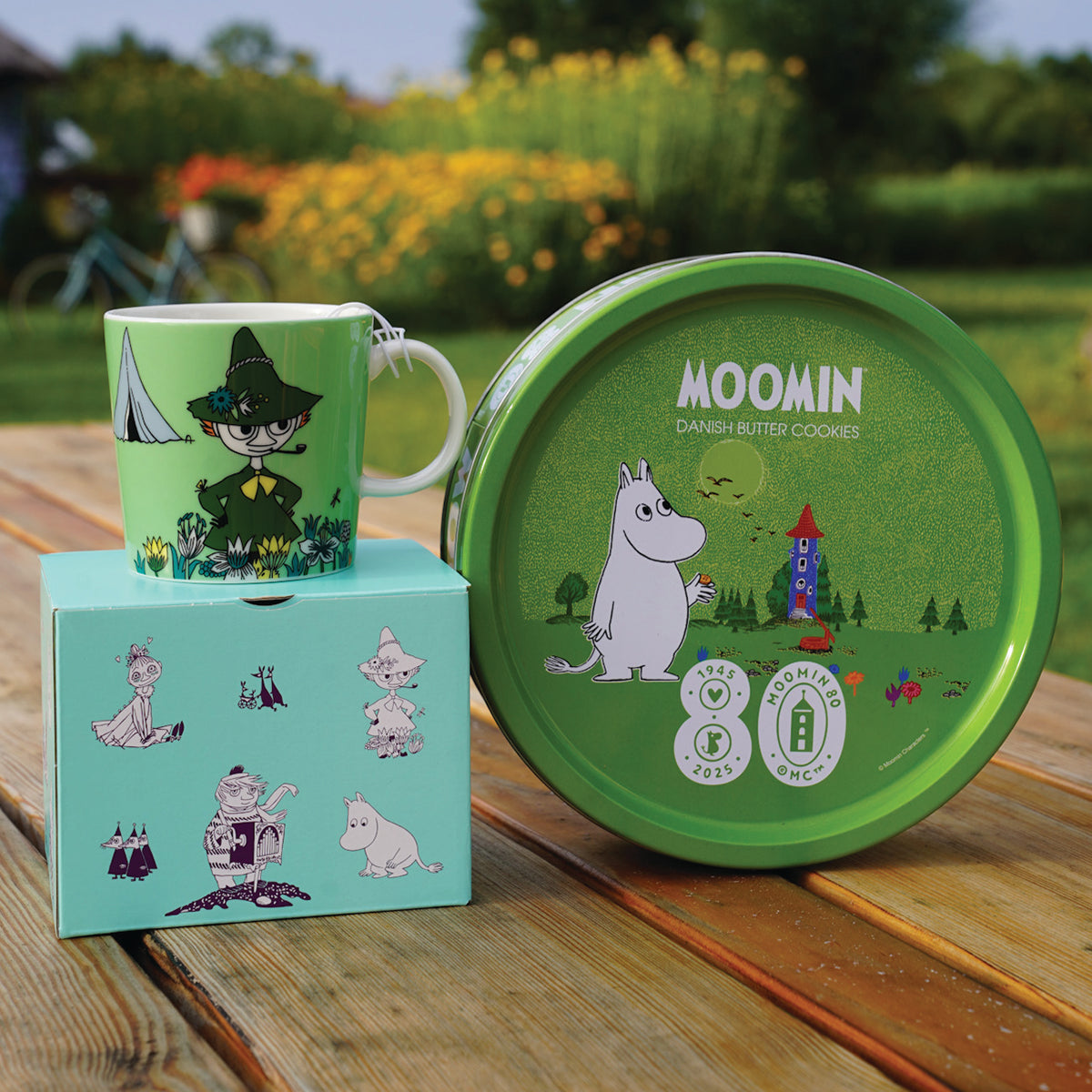OFICJALNY MOOMIN SHOP POLSKA Zestaw 2-el. kubek porcelanowy 300ml Włóczykij Moomin Arabia + ciastka maślane w puszce 340g House of Denmark