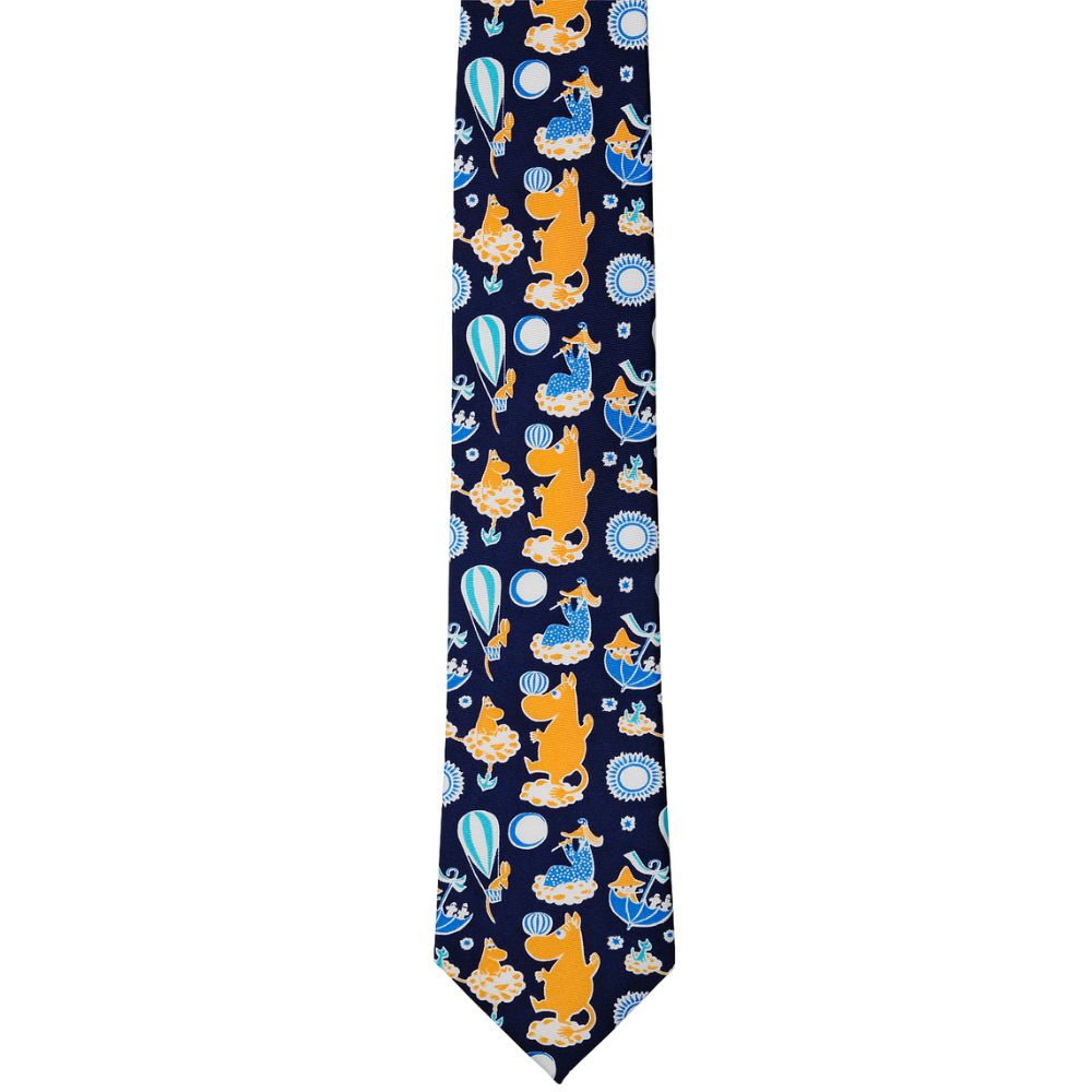 Postacie z Muminków zostały wplecione w ten jedwabny krawat. Dzięki technice żakardowej, postacie zostały odtworzone za pomocą misternych wzorów tkackich. Wysokiej jakości, gruby i pięknie połyskujący krawat z naturalnego jedwabiu został ręcznie zszyty w odpowiedni kształt. Szerokość i wzory krawata zostały zaprojektowane tak, aby były odporne na upływ czasu i intensywne użytkowanie.