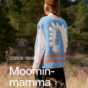 Ta książka celebruje to dziedzictwo poprzez dziewiarstwo. Zawiera 23 wzory dziewiarskie autorstwa 18 projektantów z całego świata, którzy przekładają atmosferę Doliny Muminków na oczka: ubrania i akcesoria oddające ciepło uścisku Mamusi Muminka, ostry humor Małej Mi, niezależność Włóczykija oraz słony oddech północnego morza. Pomysł na książkę narodził się z dziecięcych wspomnień historii Jansson — od komiksów i odcinków telewizyjnych po magiczny świat jej sztuki. Jej realizacja stała się jednym z najważniejszych projektów wydawnictwa Laine, hołdem zarówno dla 80. rocznicy Muminków, jak i ponadczasowej twórczości Jansson.