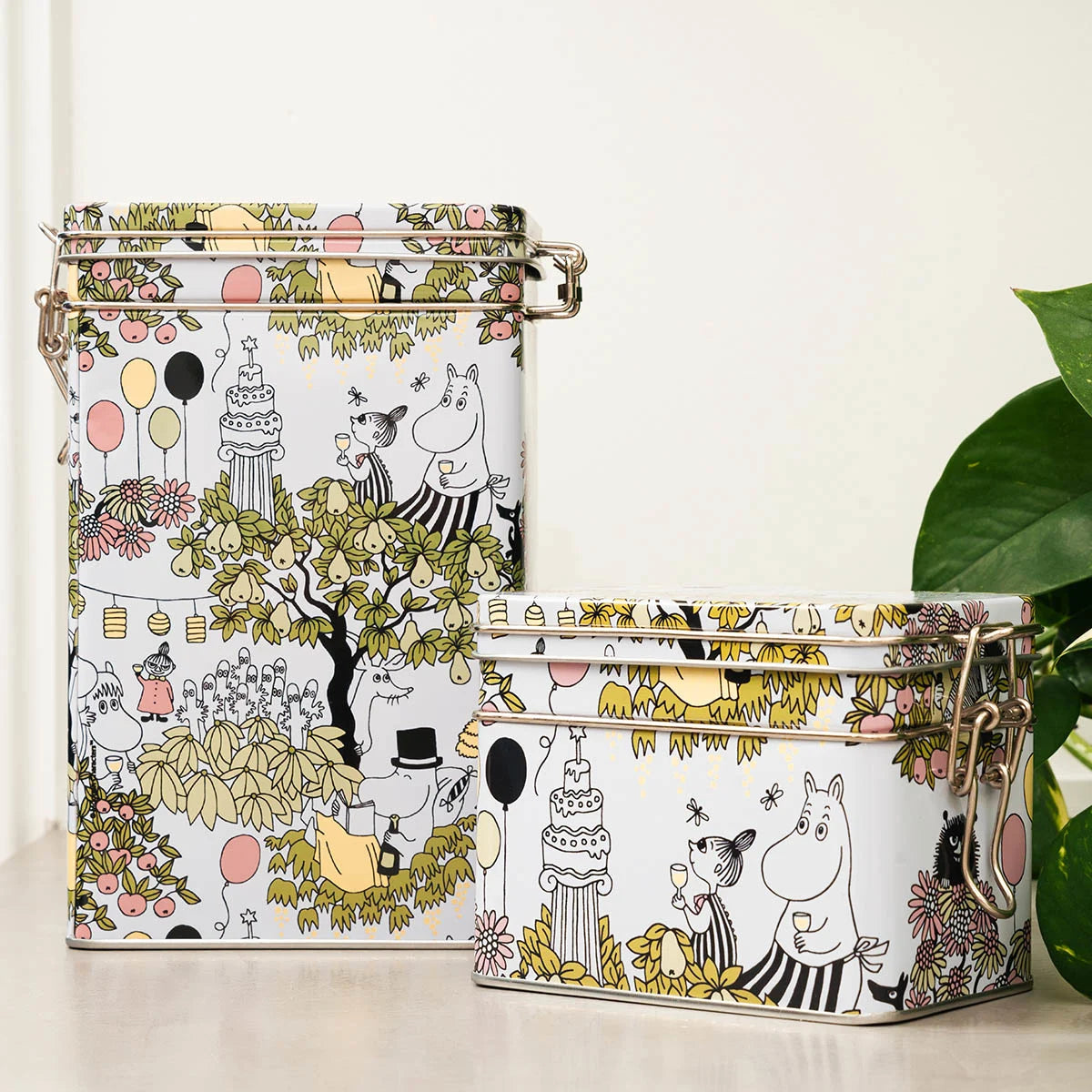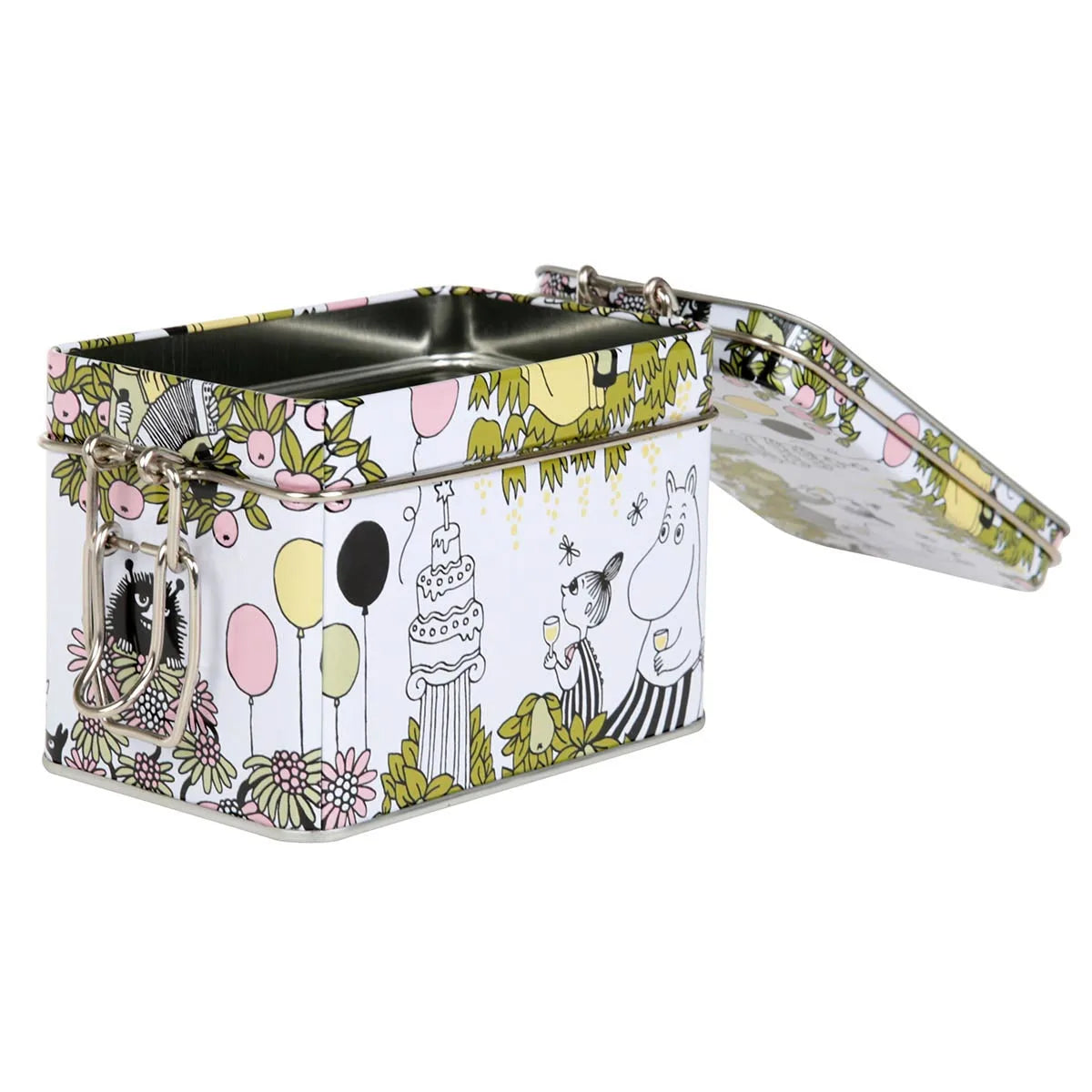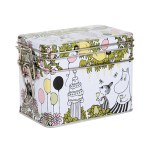 Piękna, metalowa puszka do przechowywania, w której Muminek i jego przyjaciele spędzają czas w ogrodzie podczas przyjęcia. Wsuwane, łatwe w użyciu wieczko. Myć ręcznie i dokładnie suszyć. Wymiary 15x9,5x8 cm.