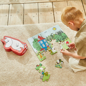 Wskazówka: Twoje dzieci nigdy się nie znudzą tymi puzzlami. Jeśli wyrosną z gry, możesz oprawić piękną układankę i powiesić w ich pokoju. Pudełko w kształcie Muminka z puzzlami w liczbie 24 elementów. Zalecane dla dzieci w wieku +3 lata.